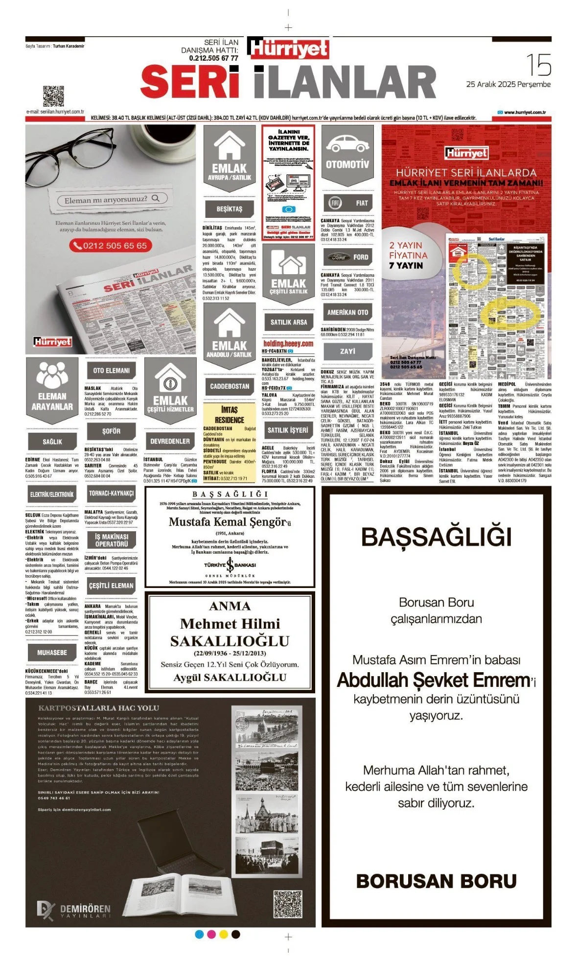 - 25 Aralık 2025 Perşembe HÜRRİYET Vefat (Ölüm) – Başsağlığı – Anma – Teşekkür İlanları